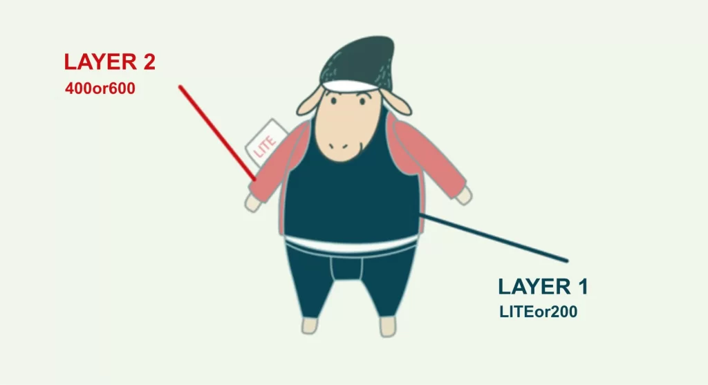 その他に選び方の基準としては、「ウールが何%」生地に使用されているかです。天然のメリノウールの機能性を感じるには、一般的に60〜70%以上あると良いとされています。最近では、メリノウールとうたう製品がたくさん出ていますが、その製品がどのようにウールが使われているかを確認することをおすすめします。また、使用されているウールはミュールシングフリーであるかも確認してみると、環境保護や動物愛護の観点でも地球にやさしい行動ができるかもしれません。